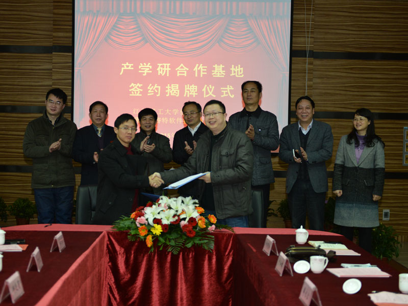 公司通过PPT介绍公司情况后,廖列法副院长代表江西理工大学信息工程学院与曾彬董事长进行了《产学研合作基地》签约。