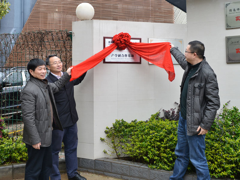 签约结束后,大家移步至公司大门由副校长邱廷省、区委常委、区政府副区长傅永宝及董事长曾彬三方进行基地揭牌。揭牌后参观了由公司承建的章贡区软件孵化园。