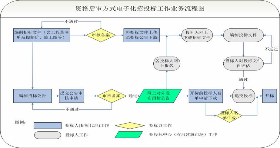 注:资格预审流程在开标时生成投标人名单同资格后审。