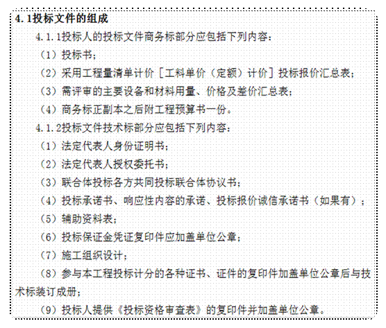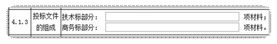 注意:此处填写内容为招标文件中 4.1条中技术标和商务部部分组成内容,如下图: