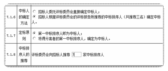 注意:“中标排序人的推荐”中推荐家数决定了专家评审商务标评审的家数;