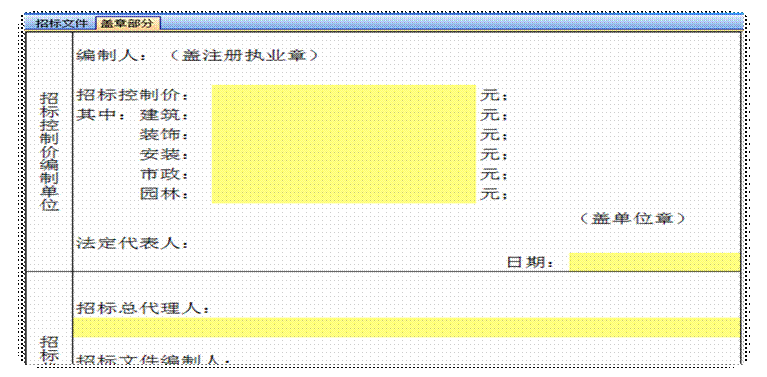 黄底部分为填写数据,其中招标控制价部分是在控制价文件导入后自动生成;