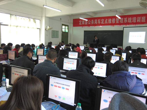 此次培训,共有91家参训单位,其中包括县委县政府及相关部门、各镇、乡、街道办事处以及定点维修企业。培训由定南县纪委廉政办潘主任及相关负责人莅临监督,并关心参加培训的送修单位和定点维修企业到场签到情况。培训主要分三个阶段:一、主要由我公司的软件实施工程师张玺担任主讲,具体阐述了公务用车定点维修管理系统的作用,并详细讲解了这款软件的实施步骤;二、主讲完之后,参加培训的单位和企业都认真的上机练习操作,同时由我公司派的四名专业人员也在场下为大家解难答疑;三、最后是留给参加培训人员的提问和讨论时间。